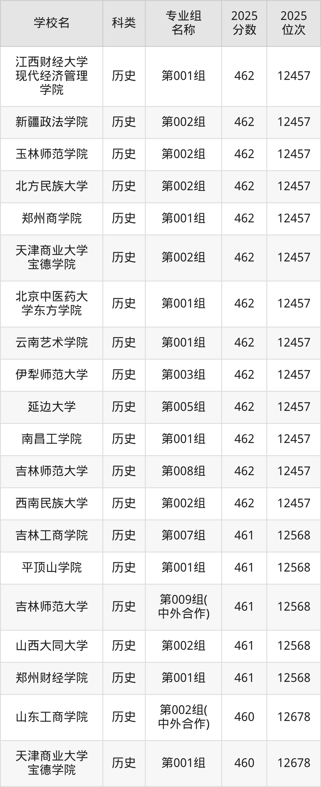 2025年吉林歷史類本科線為384分,462分能上的本科大學(xué)共計189所,其中公辦大學(xué)錄取位次排名最低的是海南熱帶海洋學(xué)院(第002組(中外合作)384分,位次21618名),即代表考生省排名位次在21618名及以內(nèi)就可以報考公辦本科。