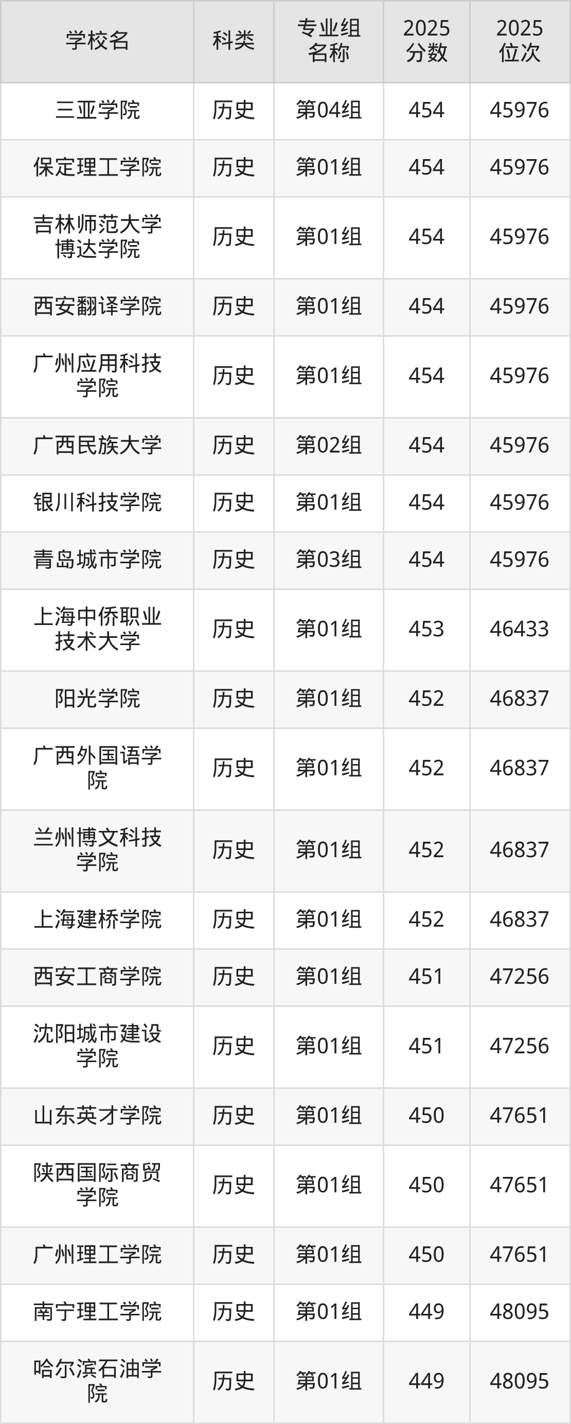 下面是廣西歷史類454分能上的二本大學(xué)排名Top20一覽表: