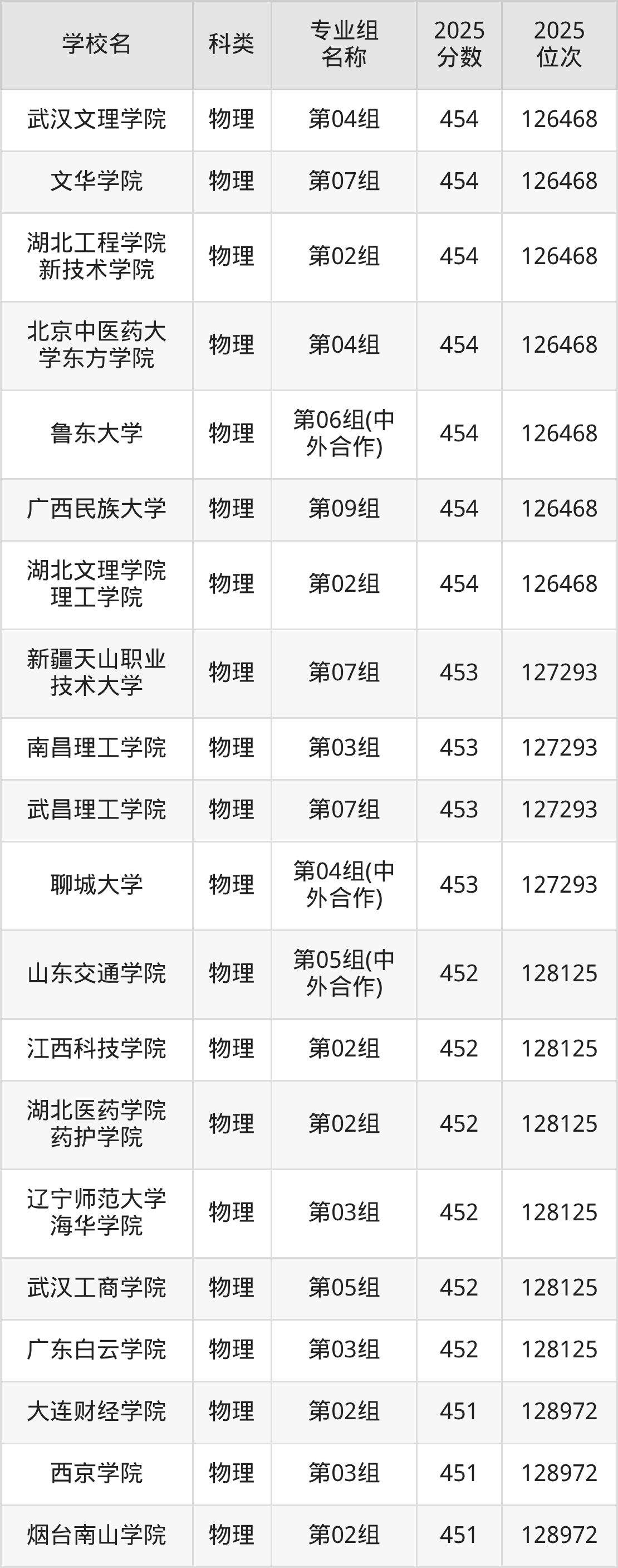 2025年湖北物理類本科線為426分,454分能上的二本大學(xué)共計154所,其中最低分公辦院校為瓊臺師范學(xué)院(第06組(中外合作)441分),對應(yīng)最低位次為137043名。因此想上公辦本科的考生省排名位次至少要在137043名以內(nèi)。