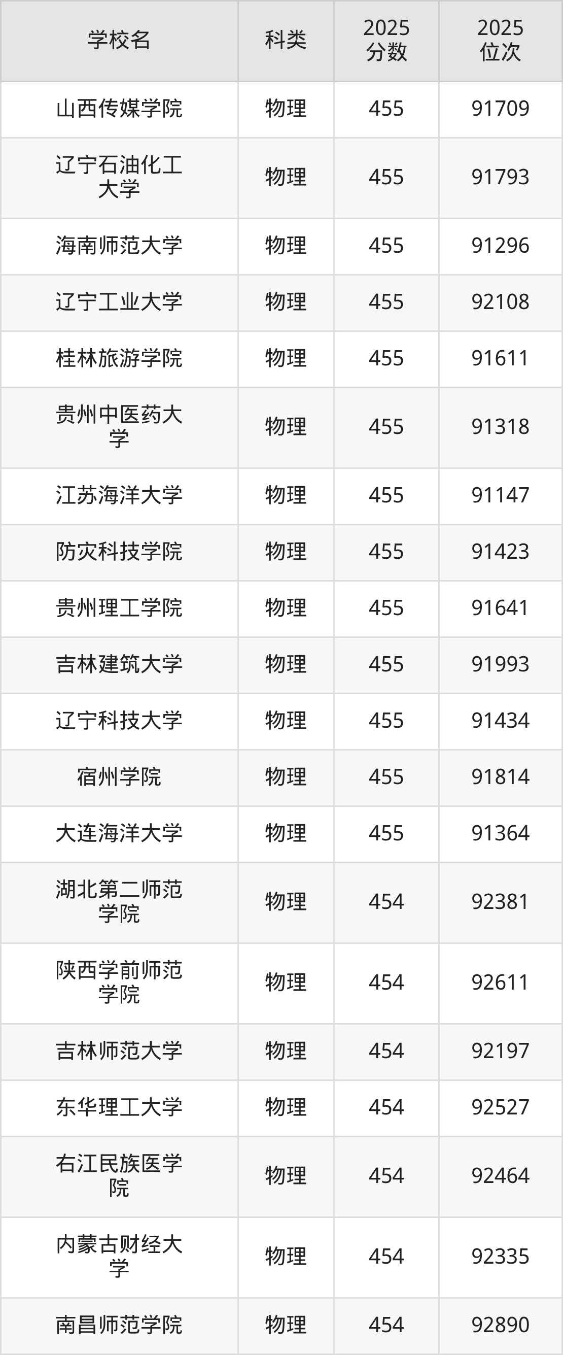 2025年遼寧歷史類(lèi)本科線為437分,455分能上的本科大學(xué)共計(jì)96所,其中最低分公辦院校為南陽(yáng)理工學(xué)院(437分),對(duì)應(yīng)最低位次為26916名。因此想上公辦本科的考生省排名位次至少要在26916名以內(nèi)。