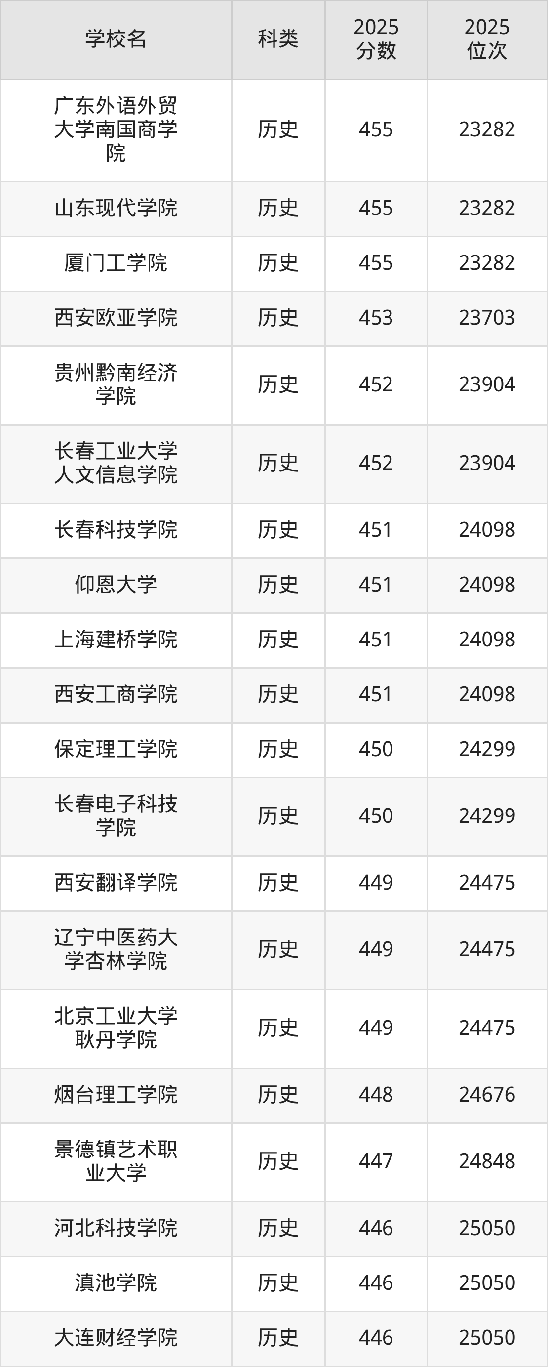 而位次最低的民辦院校有東莞城市學(xué)院、廣州理工學(xué)院、沈陽(yáng)科技學(xué)院、遼寧傳媒學(xué)院,分?jǐn)?shù)為437分,對(duì)應(yīng)最低位次排名為26916名。