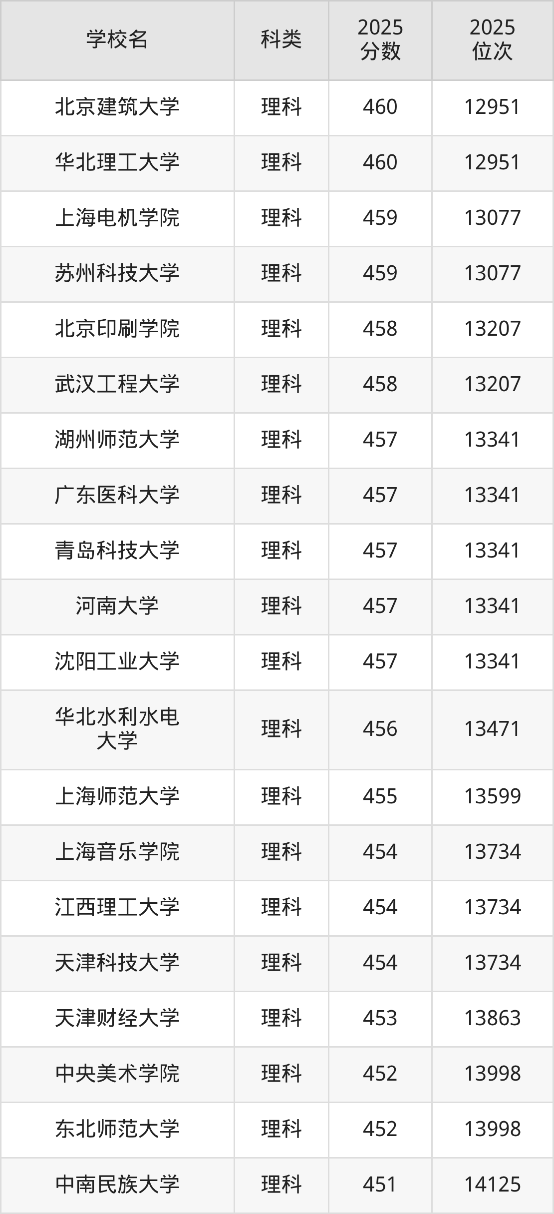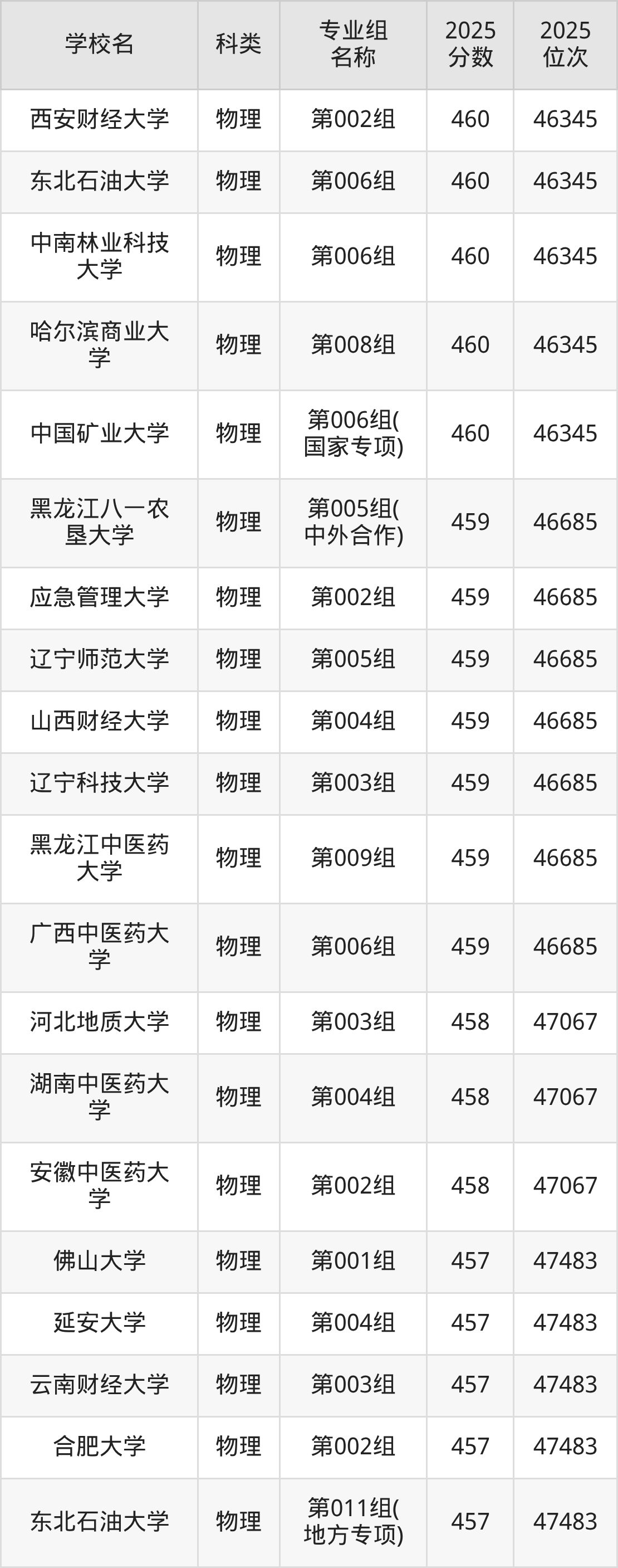 除上述院校外,460分可上的公辦一本大學還有長江大學(446分,位次14815名)、湖南科技大學(445分,位次14955名)。