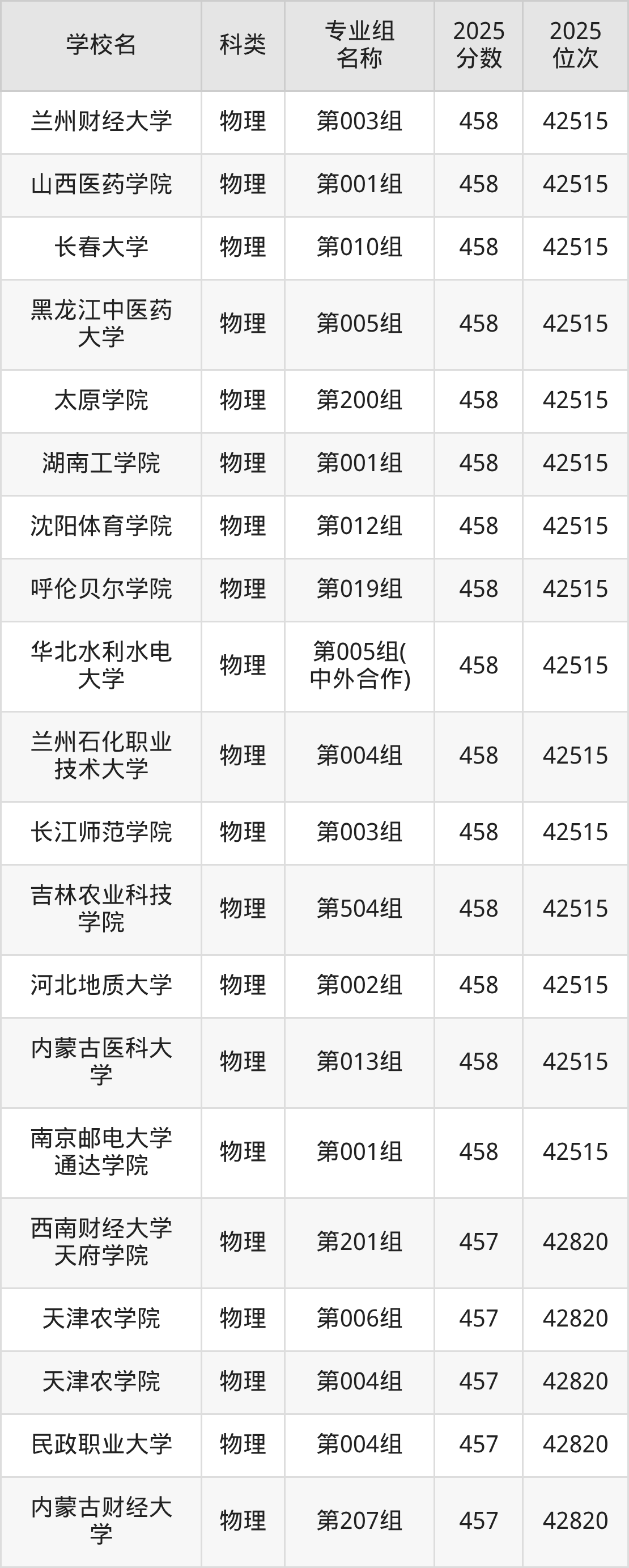 2025年內(nèi)蒙古物理類本科線為375分,458分能上的本科大學(xué)共計(jì)424所,其中公辦大學(xué)錄取位次排名最低的是內(nèi)蒙古醫(yī)科大學(xué)(第010組375分),其2025最低位次為68528名。
