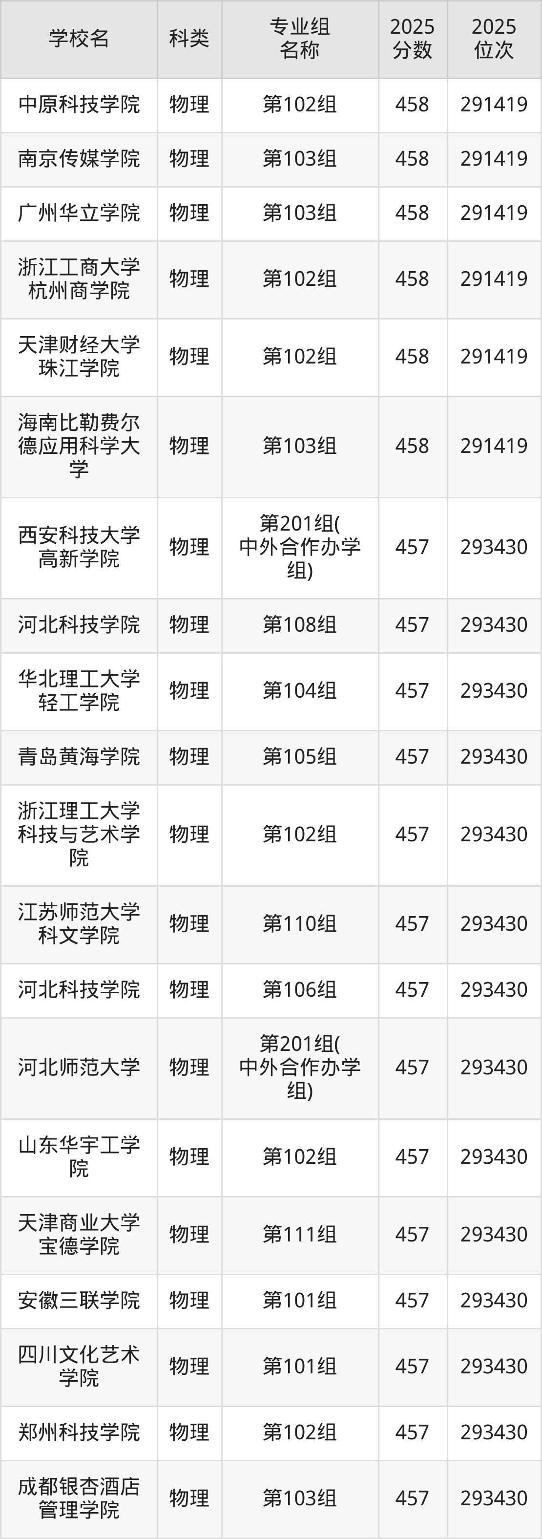 2025年河南物理類本科線為427分,458分能上的本科大學(xué)共計(jì)294所,其中公辦大學(xué)錄取位次排名最低的是白城師范學(xué)院(第201組(中外合作辦學(xué)組)427分,位次348358名),即代表考生省排名位次在348358名及以內(nèi)就可以報(bào)考公辦本科。