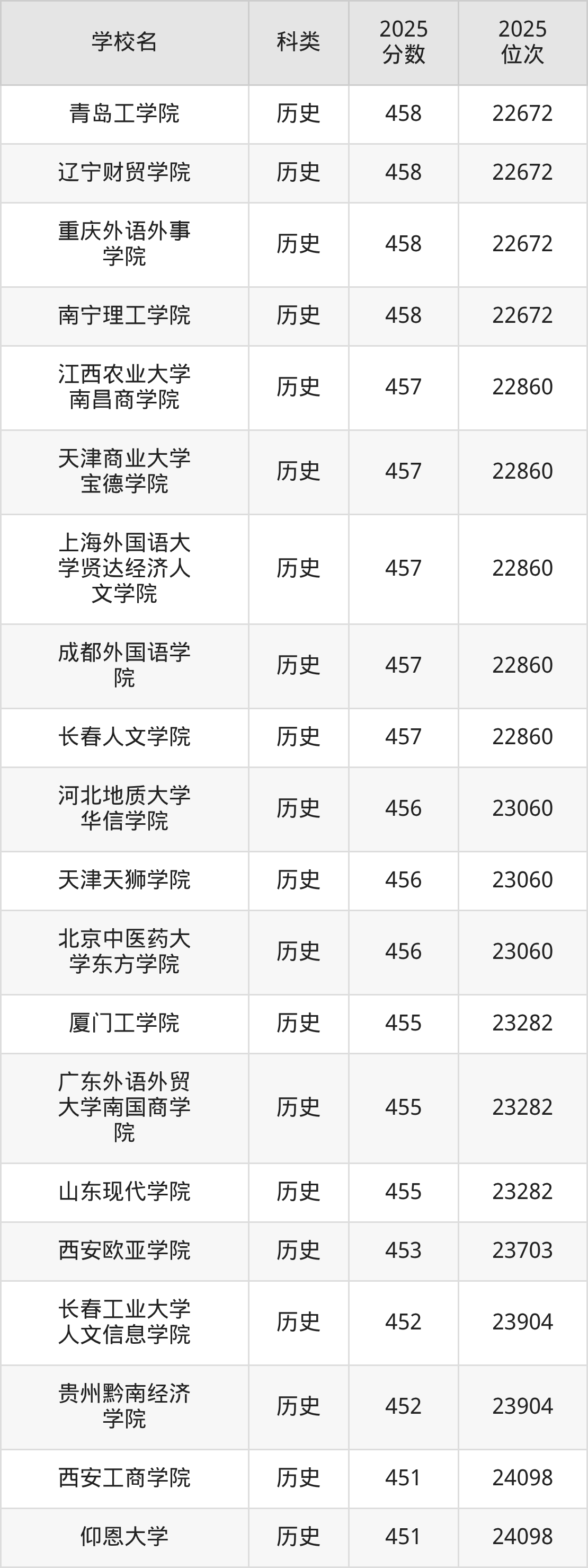 以內(nèi)蒙古歷史類為例,458分能上的本科大學(xué)有黑龍江工商學(xué)院(位次排名15938名)、山東協(xié)和學(xué)院(位次排名16205名)、哈爾濱劍橋?qū)W院(位次排名18556名)。