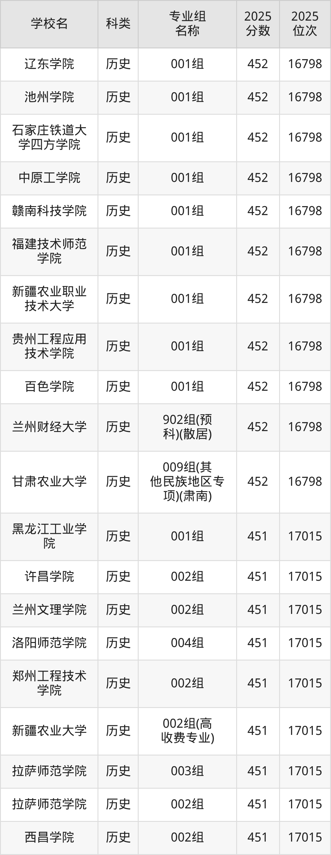 除上述院校外,452分可上的公辦二本大學(xué)還有蘭州財(cái)經(jīng)大學(xué)(902組(預(yù)科)(散居)452分,位次16798名)、拉薩師范學(xué)院(002組451分,位次17015名)。