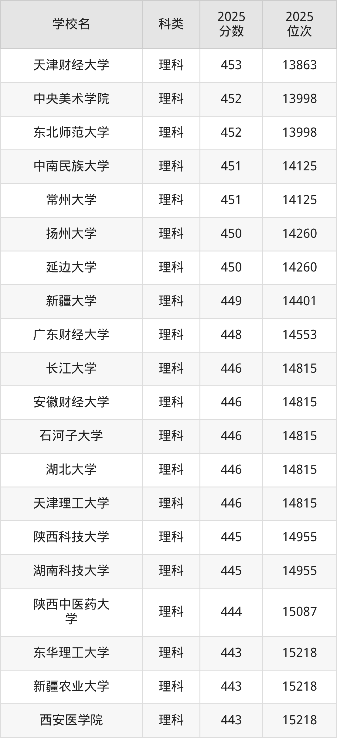 下面是新疆理科453分能上的一本大學(xué)排名Top20一覽表: