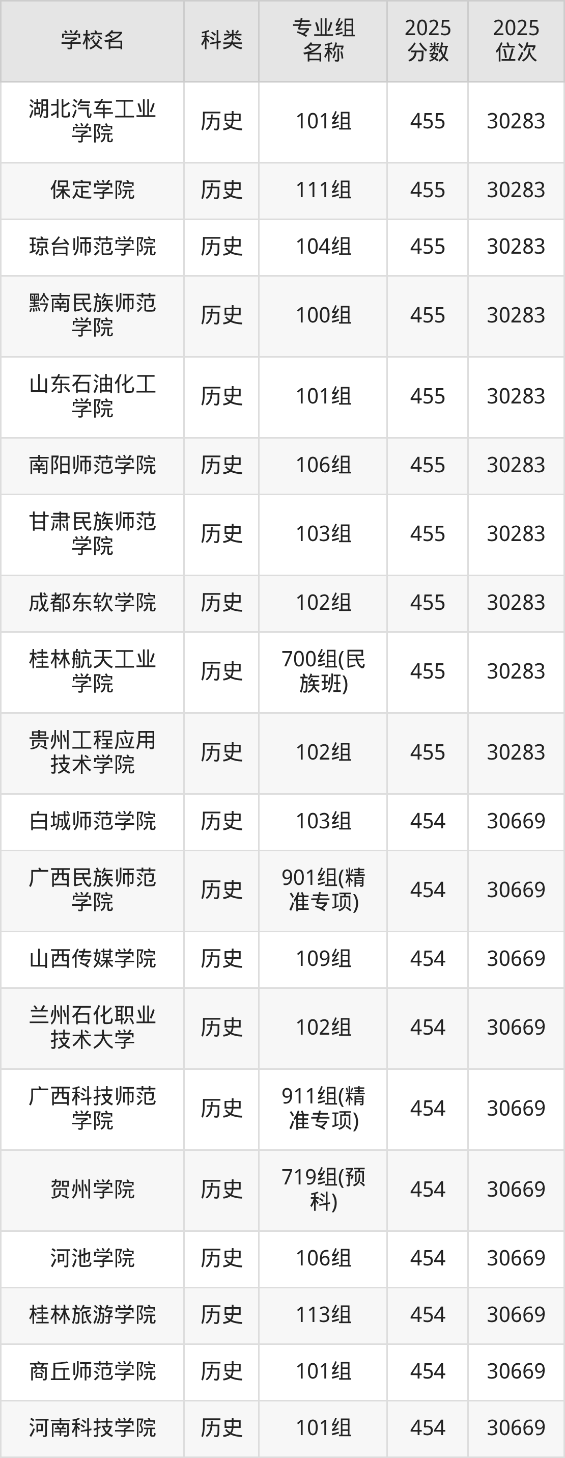 下面是廣西歷史類455分能上的二本大學(xué)排名Top20一覽表: