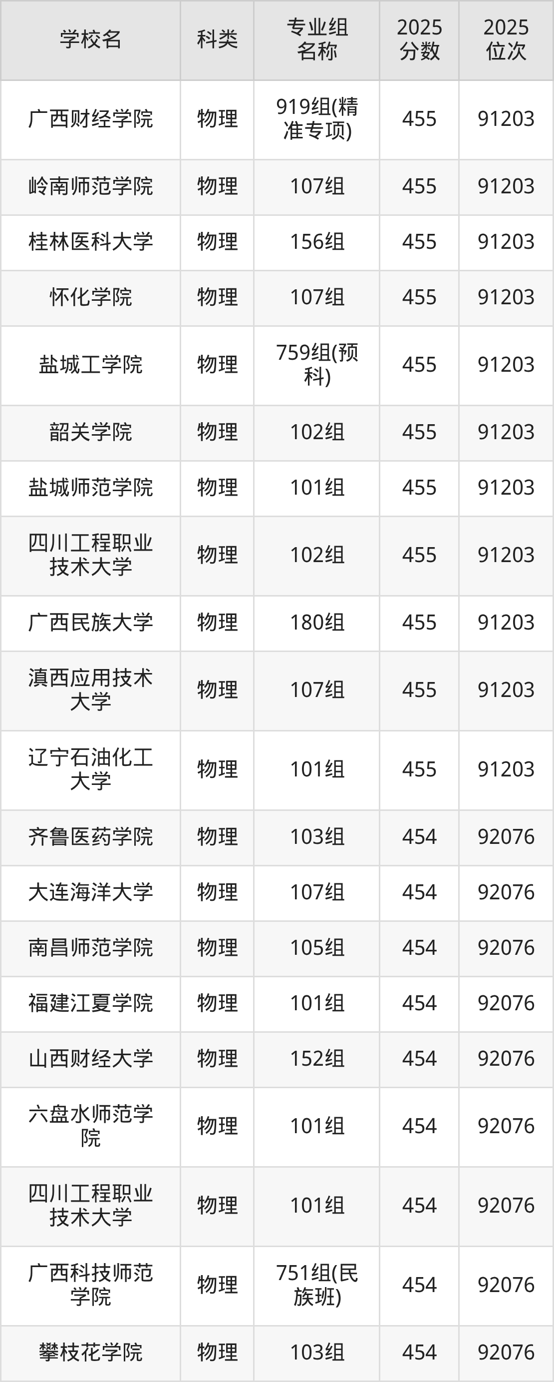 下面是廣西物理類455分能上的二本大學(xué)排名Top20一覽表: