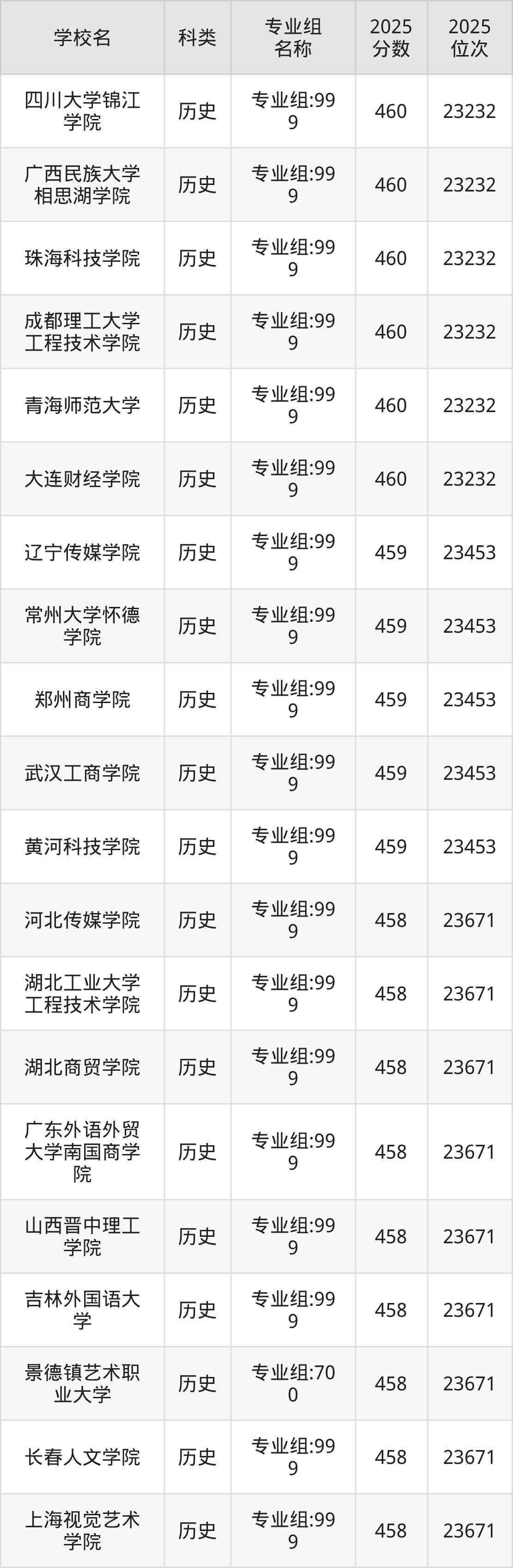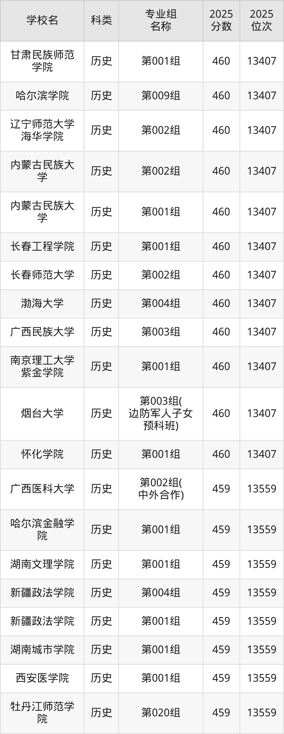 2025年黑龍江歷史類本科線為405分,460分能上的本科大學(xué)共計348所,其中公辦大學(xué)錄取位次排名最低的是桂林旅游學(xué)院(第001組(中外合作)405分,位次22977名),即代表考生省排名位次在22977名及以內(nèi)就可以報考公辦本科。