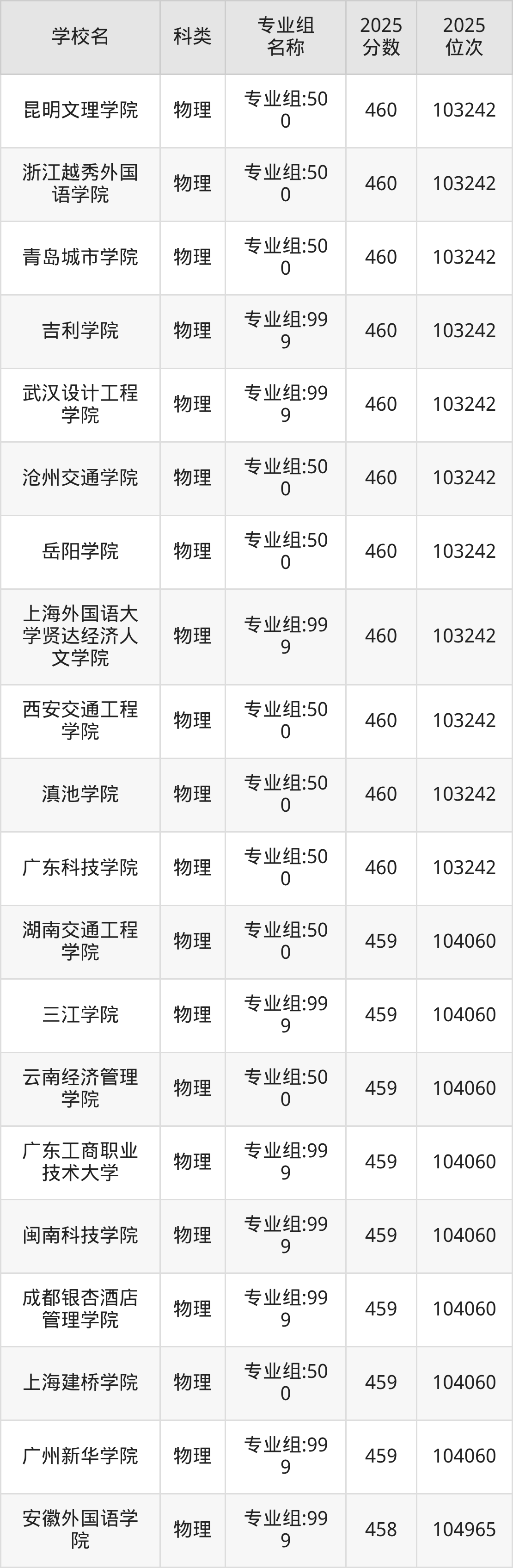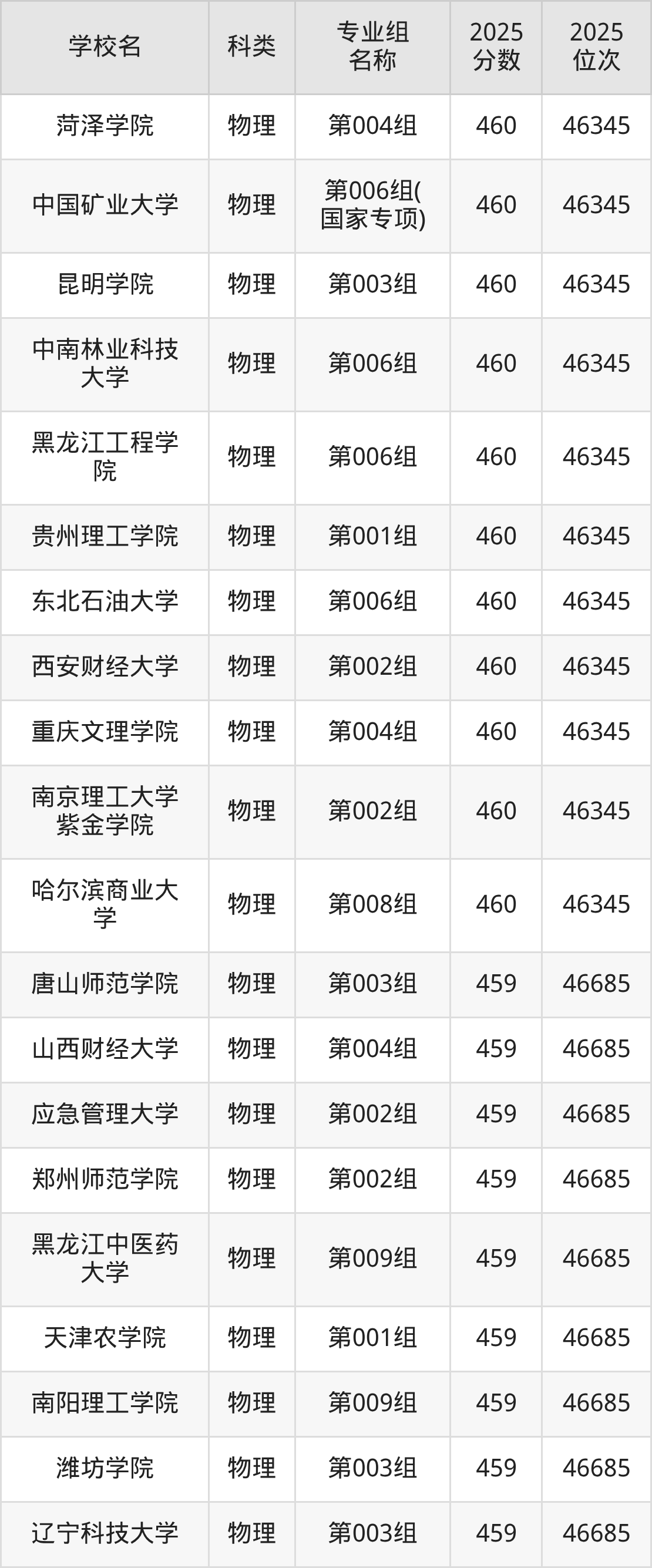 2025年黑龍江物理類本科線為360分,460分能上的本科大學(xué)共計582所,其中公辦大學(xué)錄取位次排名最低的是桂林旅游學(xué)院(第006組(中外合作)360分,位次85313名),即代表考生省排名位次在85313名及以內(nèi)就可以報考公辦本科。