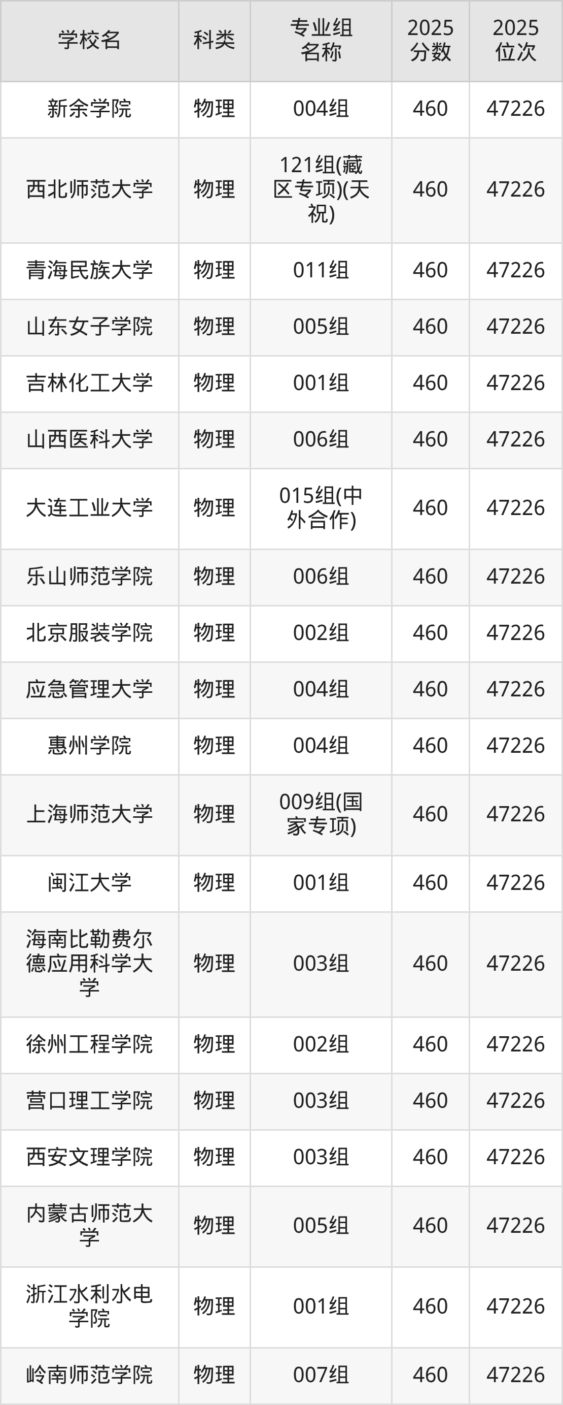 2025年福建歷史類本科線為450分,460分能上的本科大學(xué)共計126所,其中公辦大學(xué)錄取位次排名最低的是新疆第二醫(yī)學(xué)院(專業(yè)組:617450分),其2025最低位次為25562名。