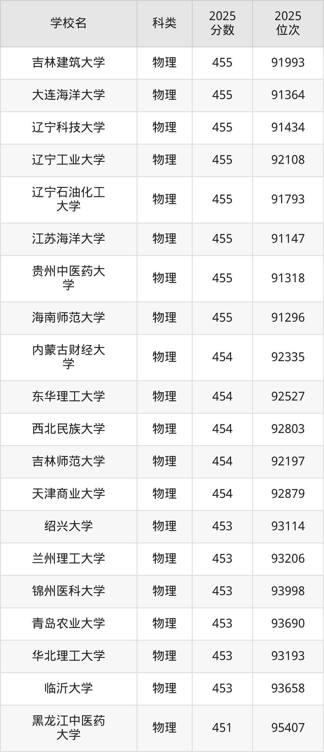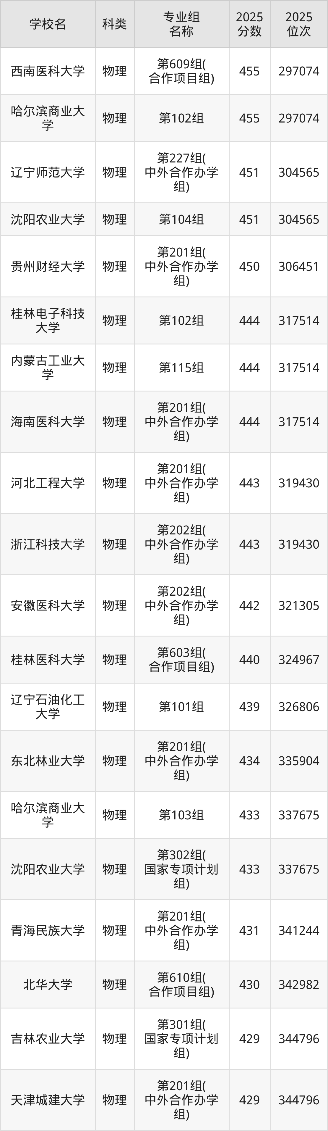 下面是貴州物理類455分能上的一本大學排名Top20一覽表: