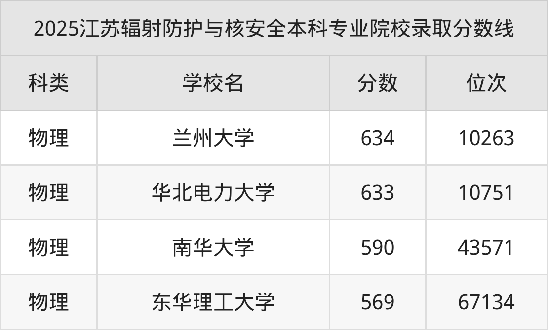 2025年江蘇輻射防護(hù)與核安全分?jǐn)?shù)線排名前4的大學(xué)名單(本科最難報(bào)考):