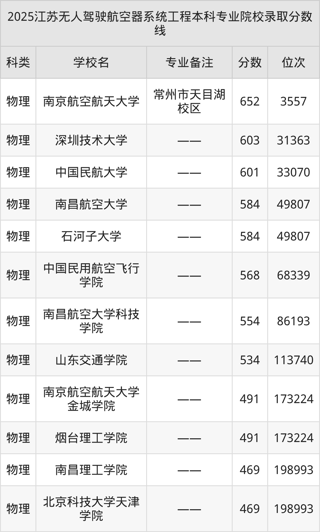 2025年江蘇無人駕駛航空器系統(tǒng)工程分數(shù)線排名前5的大學名單(本科最難報考):
