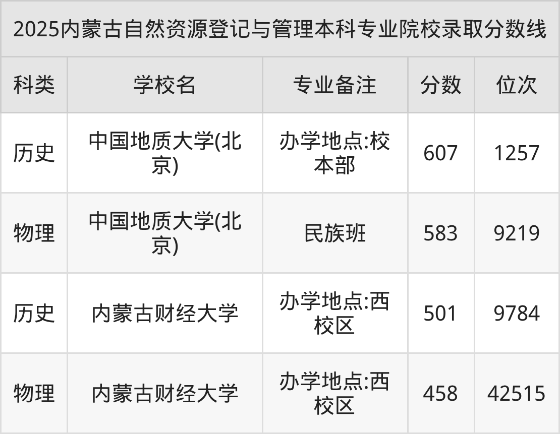 2025年內(nèi)蒙古自然資源登記與管理分?jǐn)?shù)線排名前4的大學(xué)名單(本科最難報(bào)考):