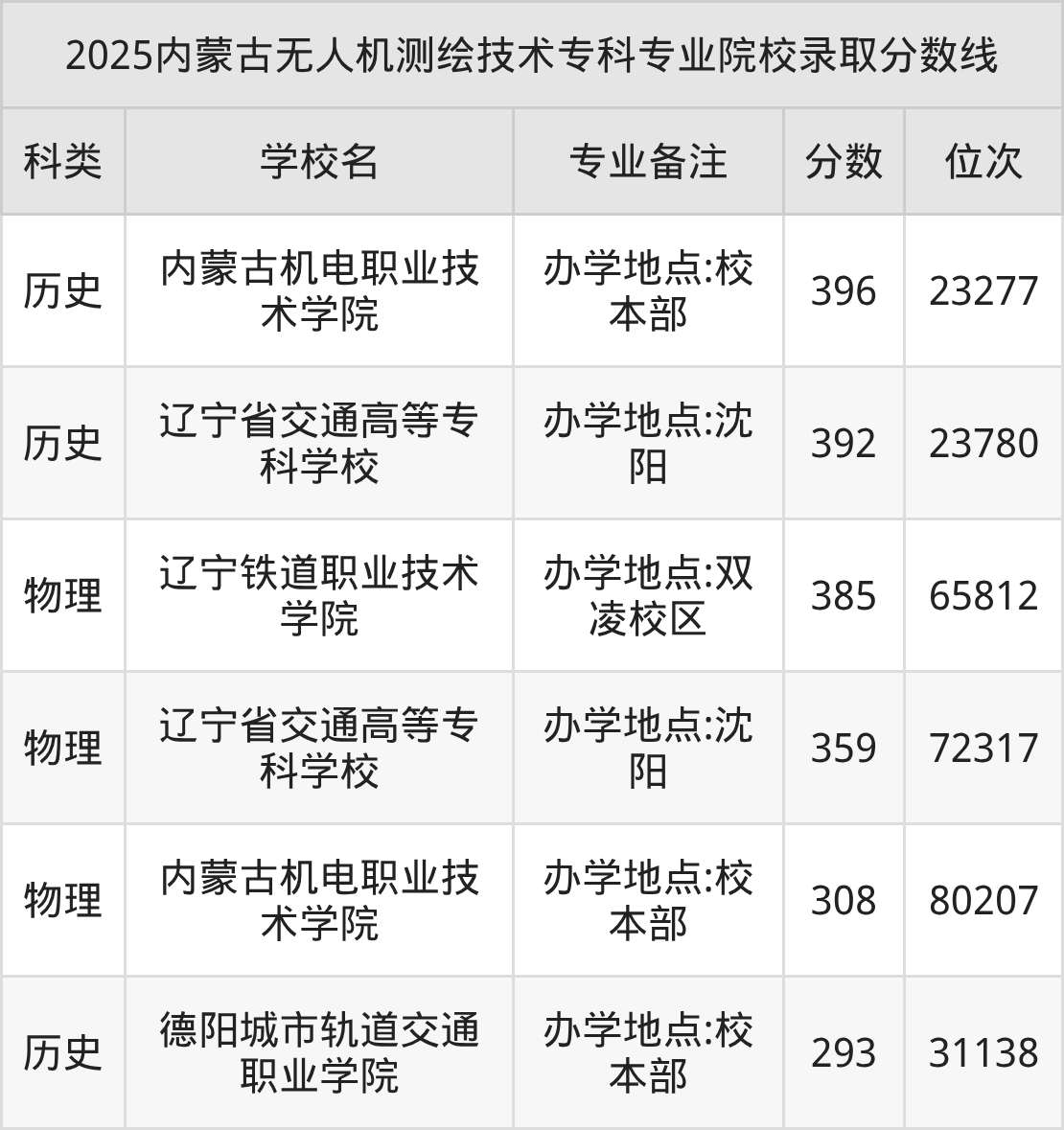 2025年內(nèi)蒙古無人機(jī)測繪技術(shù)分?jǐn)?shù)線排名前5的大學(xué)名單(??谱铍y報考):