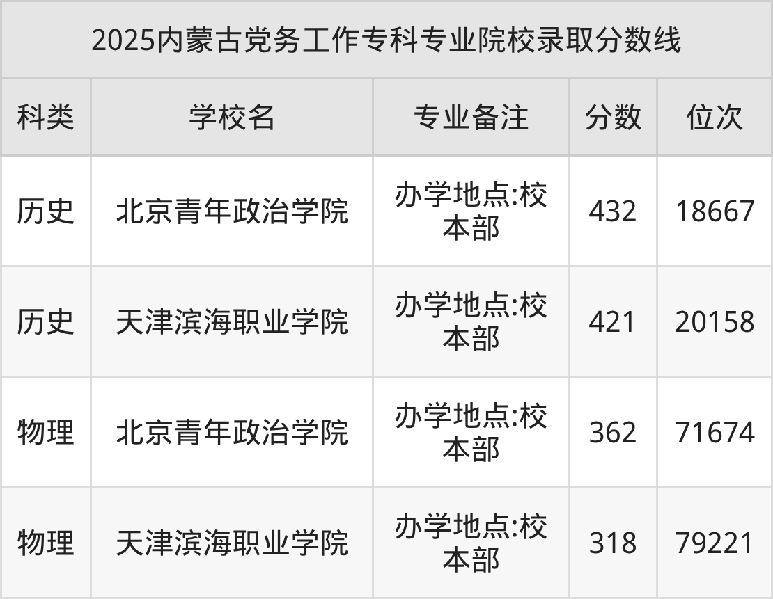 2025年內(nèi)蒙古黨務(wù)工作分?jǐn)?shù)線排名前4的大學(xué)名單: