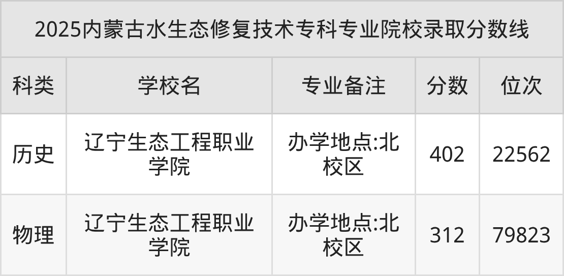 2025年內(nèi)蒙古水生態(tài)修復技術(shù)分數(shù)線排名前2的大學名單(專科最難報考):