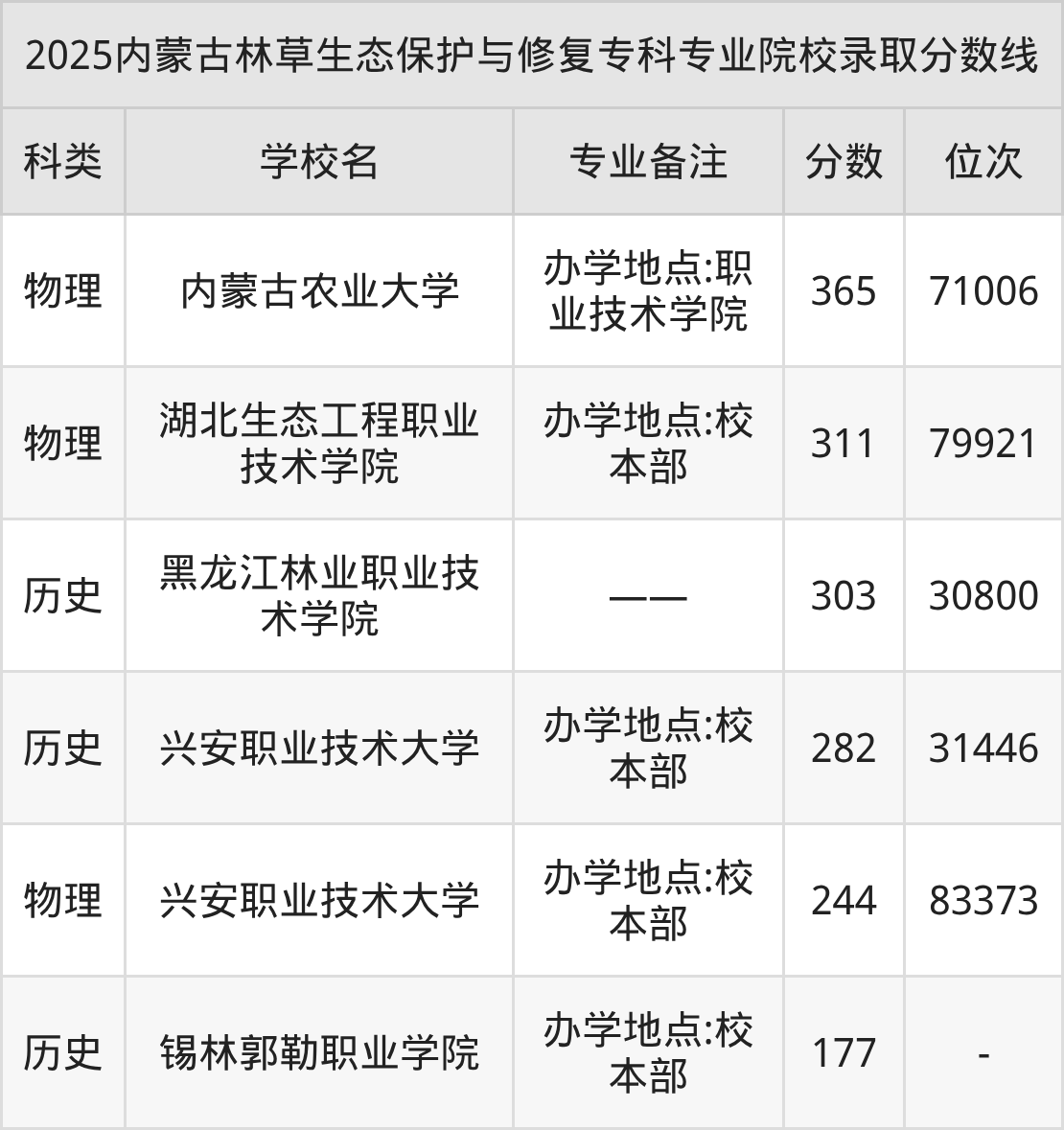 5、興安職業(yè)技術(shù)大學(xué):林草生態(tài)保護(hù)與修復(fù)(辦學(xué)地點(diǎn):校本部)244分、物理類位次83373名。