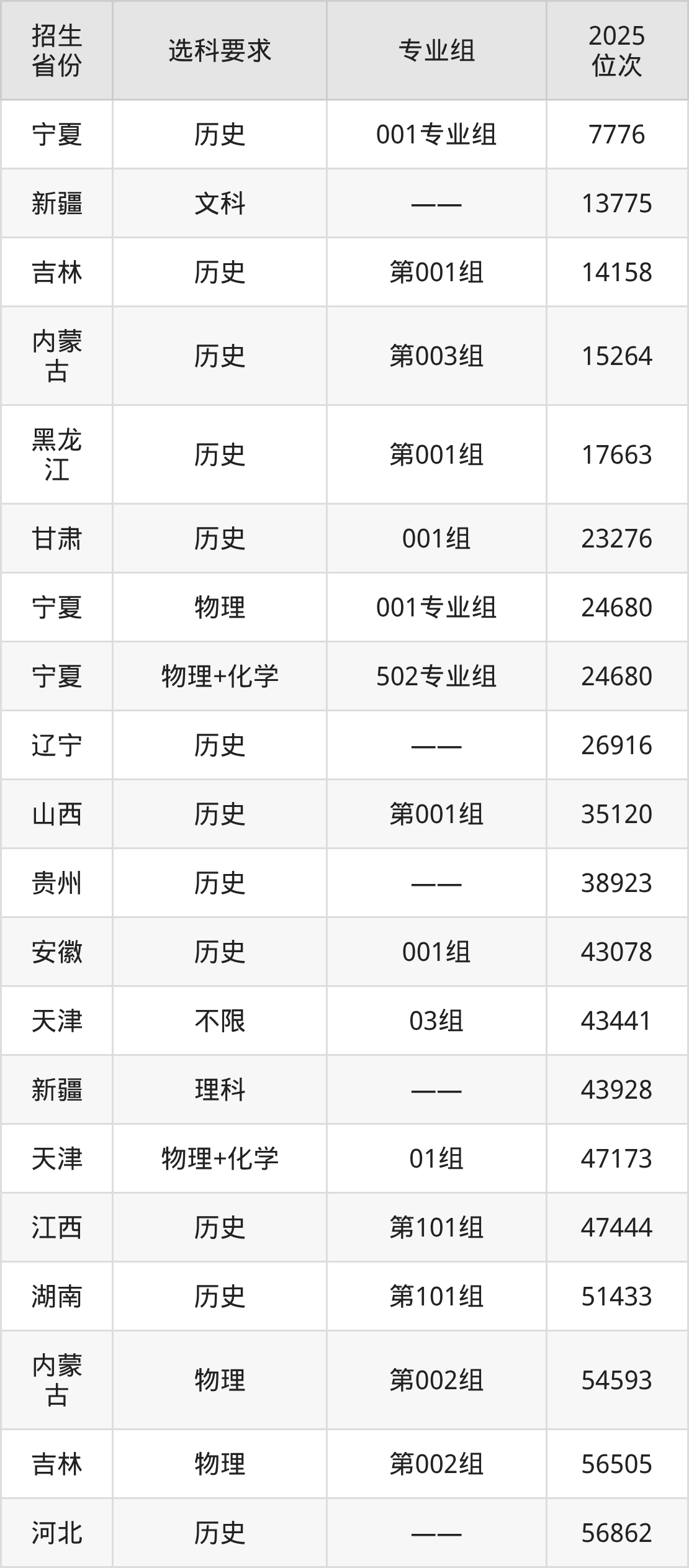 沈陽科技學(xué)院2025年在全國各省的位次差異較大,最高位次是7776位(寧夏歷史類)、最低位次是348358位(河南物理類)。各省具體位次請看下圖: