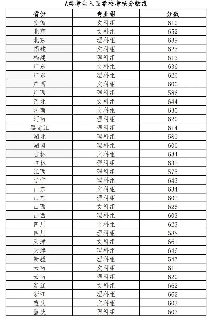 | 安徽 | 672.5 | 621 | 621 | 641 |
