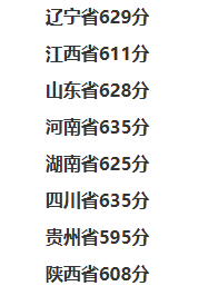 遼寧入圍分數(shù)線為646分、河北為645分、江蘇為639分、安徽為640分、山東為630分、河南為653分、湖北為623分。