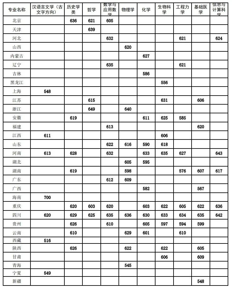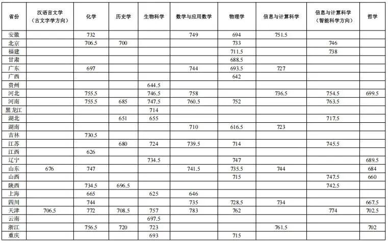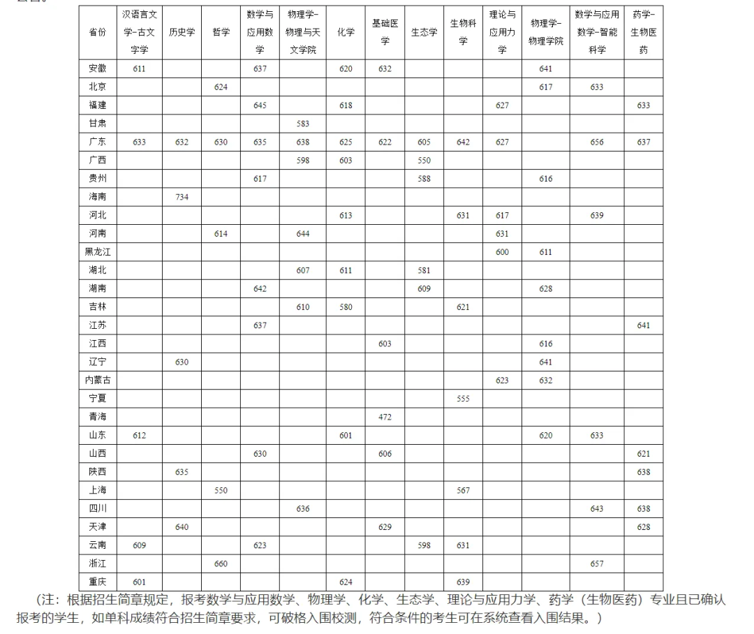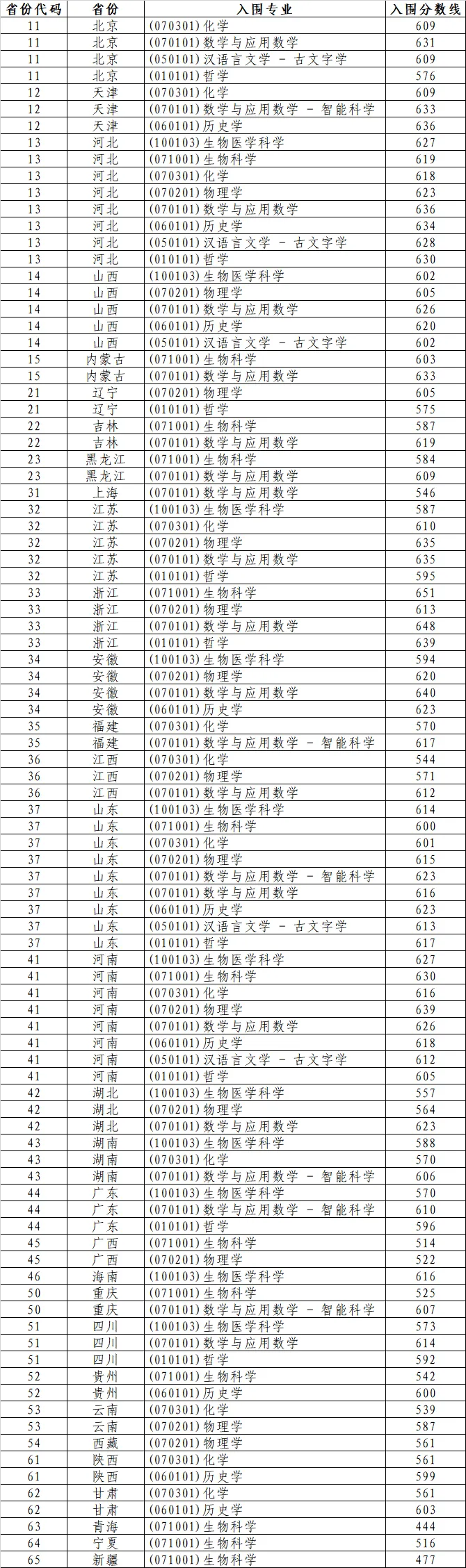 北京:化學專業(yè)入圍分數(shù)線為609分,數(shù)學與應用數(shù)學專業(yè)為631分;