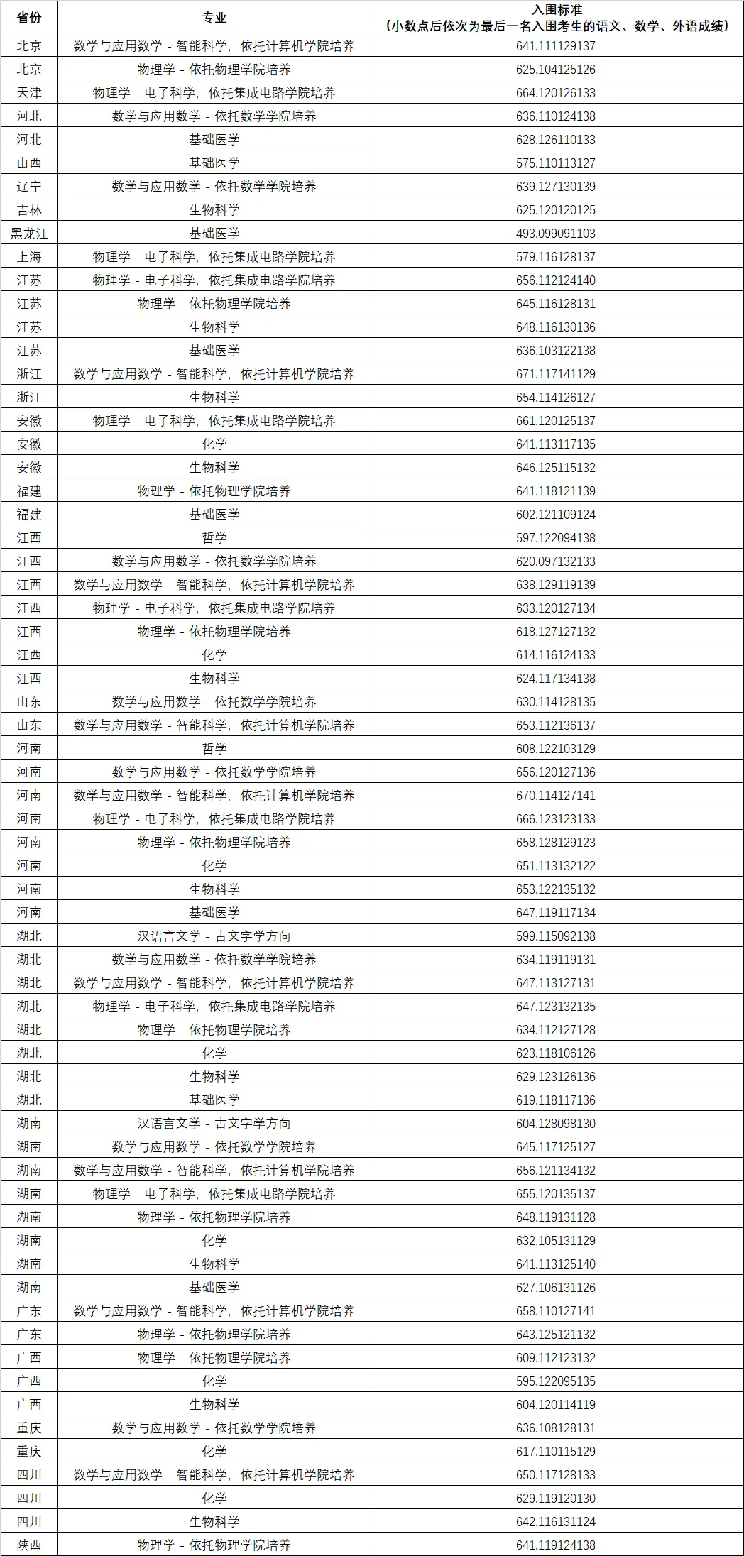 安徽:化學專業(yè)入圍分數(shù)線是641分,生物科學專業(yè)為646分;