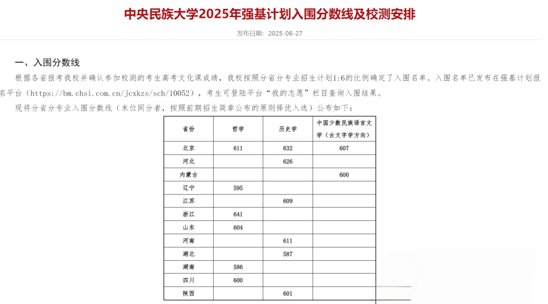 2024強基計劃入圍分數(shù)線: