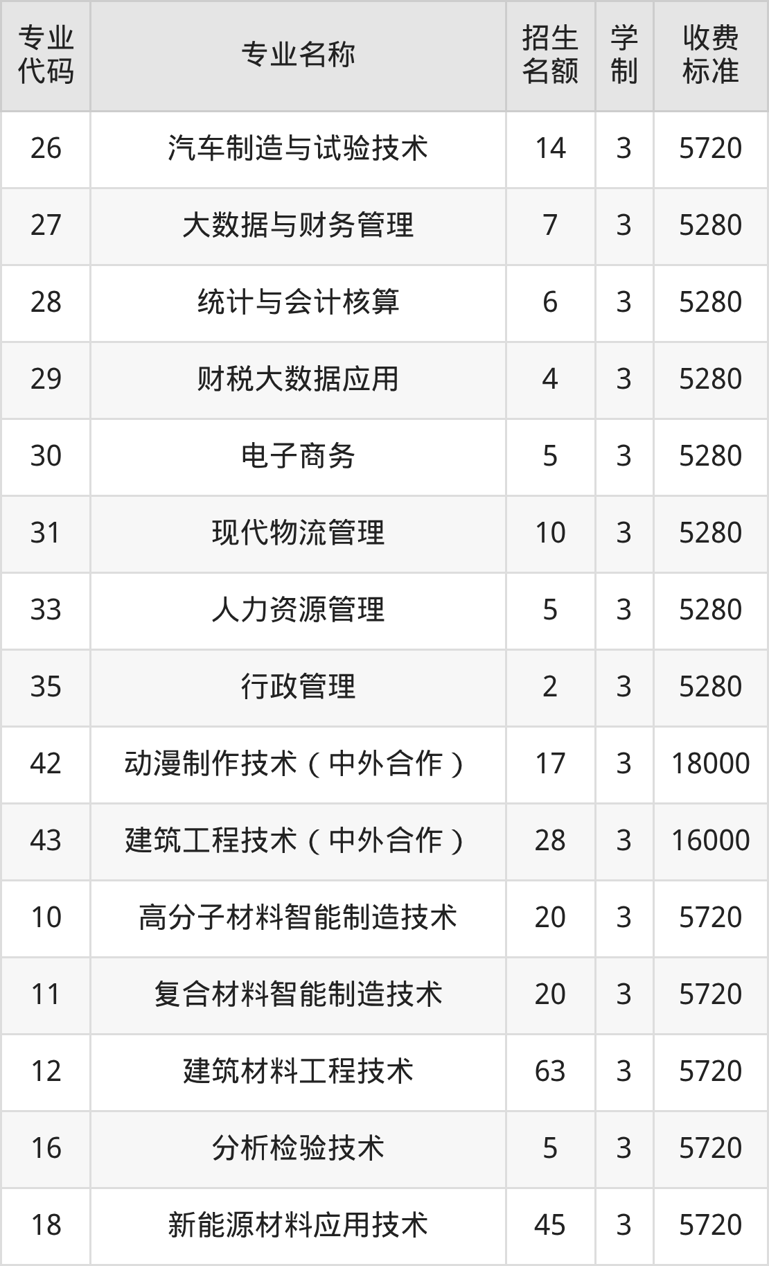下方展示的是最新完整版本的招生計(jì)劃,請(qǐng)想要報(bào)考綿陽(yáng)職業(yè)技術(shù)學(xué)院的同學(xué)參考!