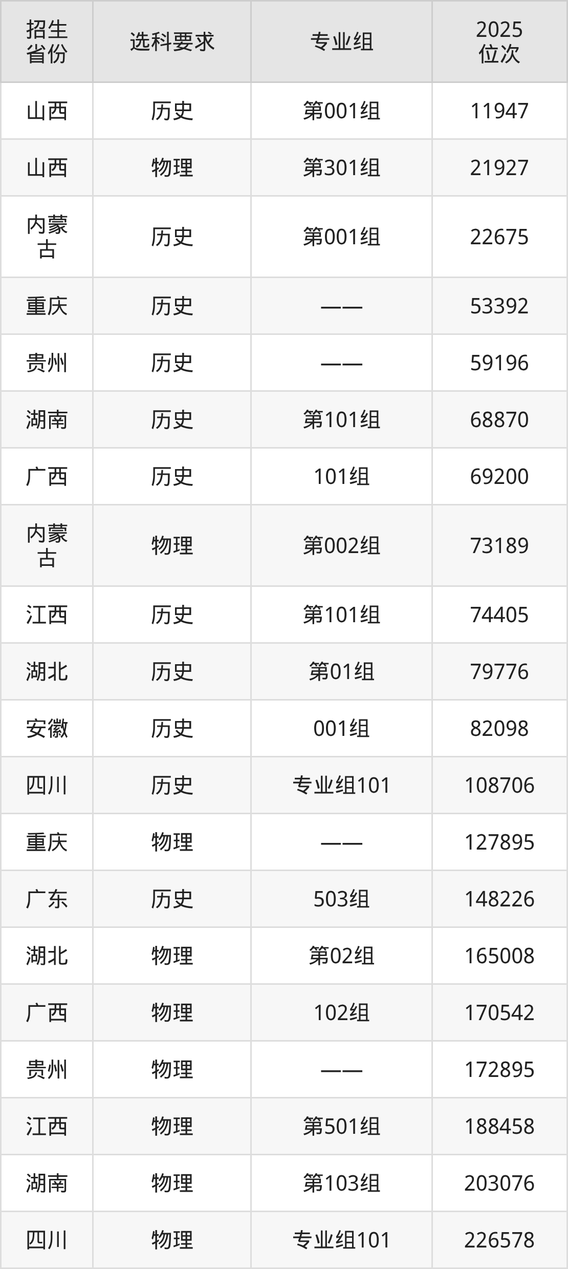 湖南機電職業(yè)技術學院2025年在全國各省的位次差異較大,最高位次是11947位(山西歷史類)、最低位次是432998位(山東)。各省具體位次請看下圖: