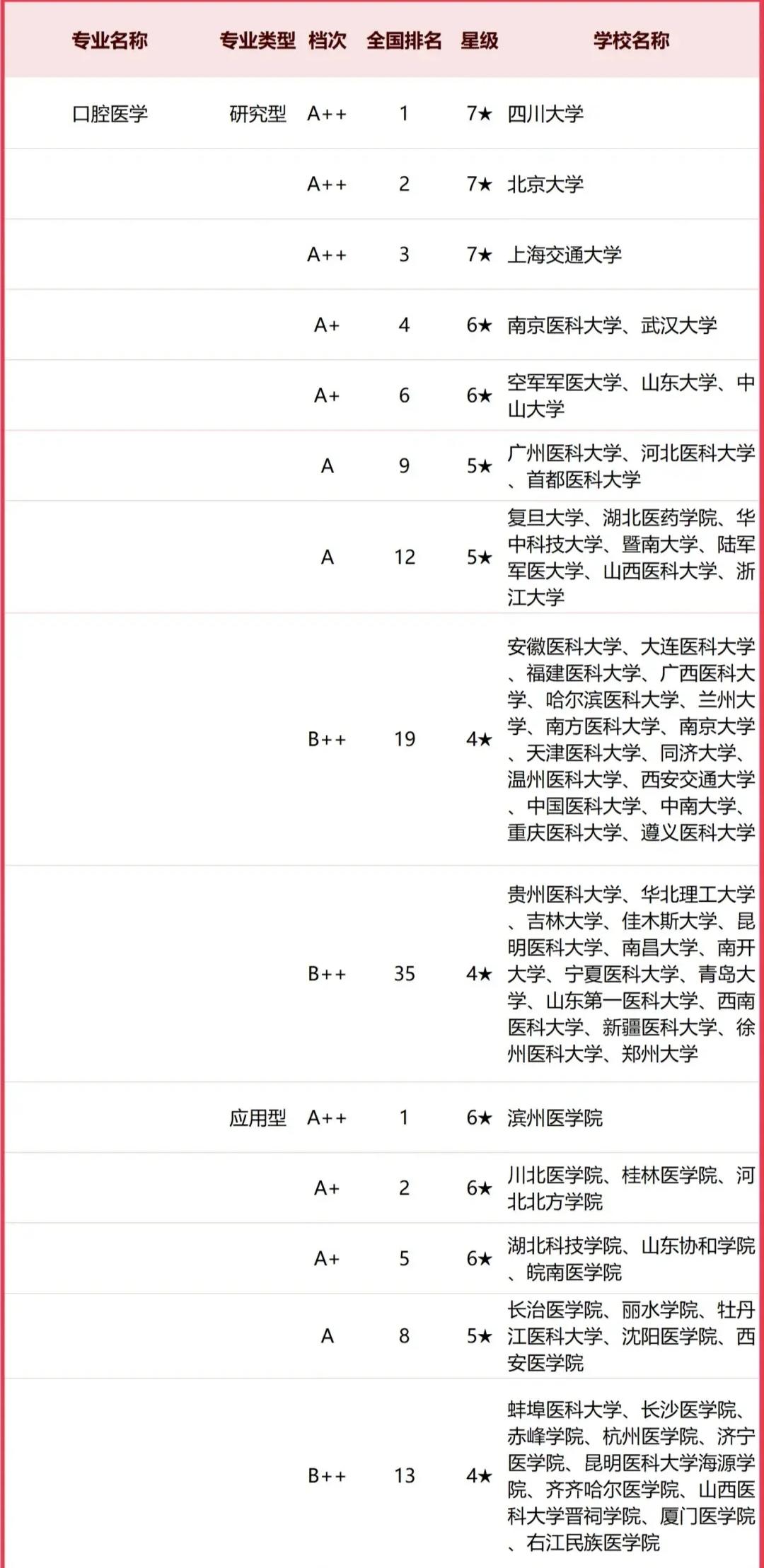 校友會中國大學(xué)口腔醫(yī)學(xué)專業(yè)排名全國前10名的大學(xué)分別有: