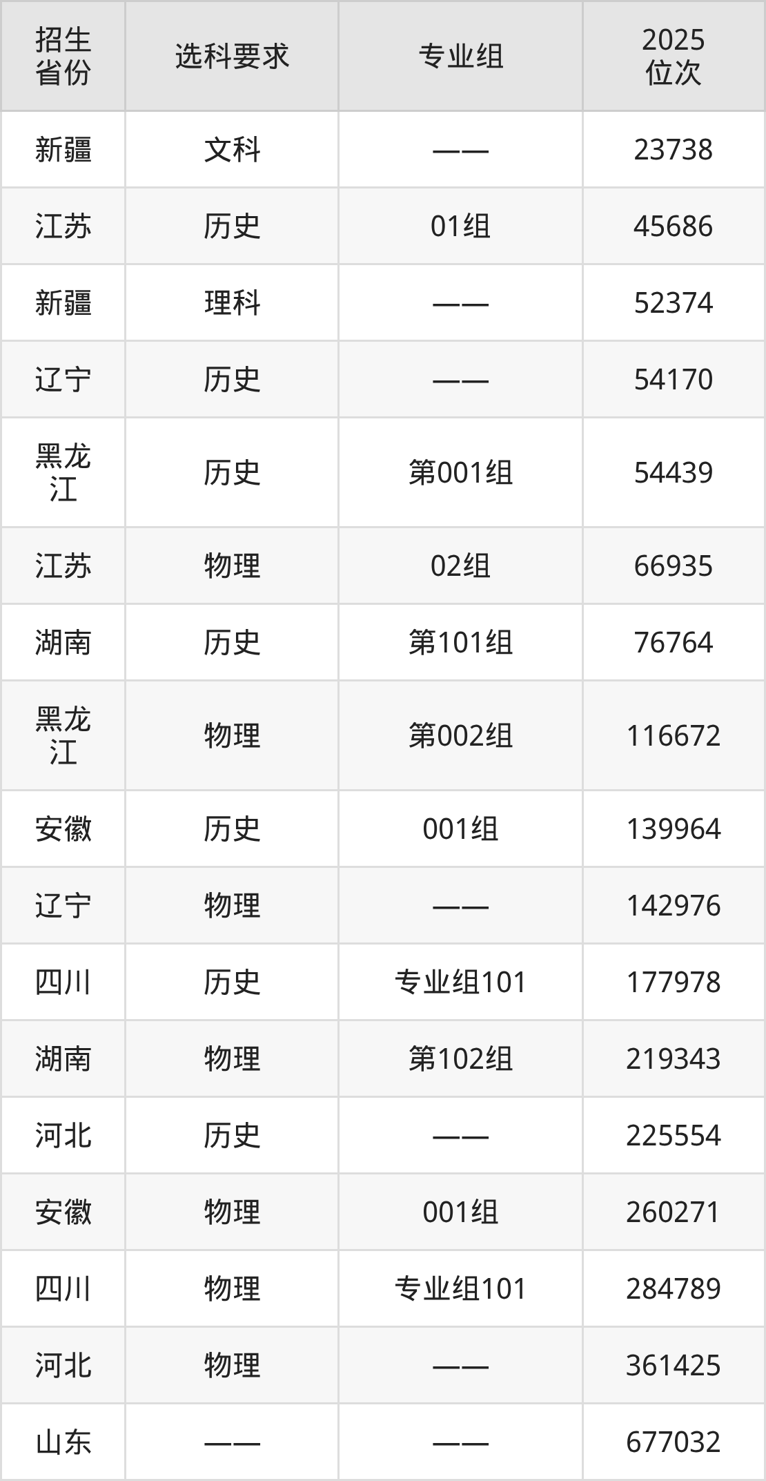 曹妃甸職業(yè)技術(shù)學院2025年在全國各省的位次差異較大,最高位次是23738位(新疆文科)、最低位次是677032位(山東)。各省具體位次請看下圖: