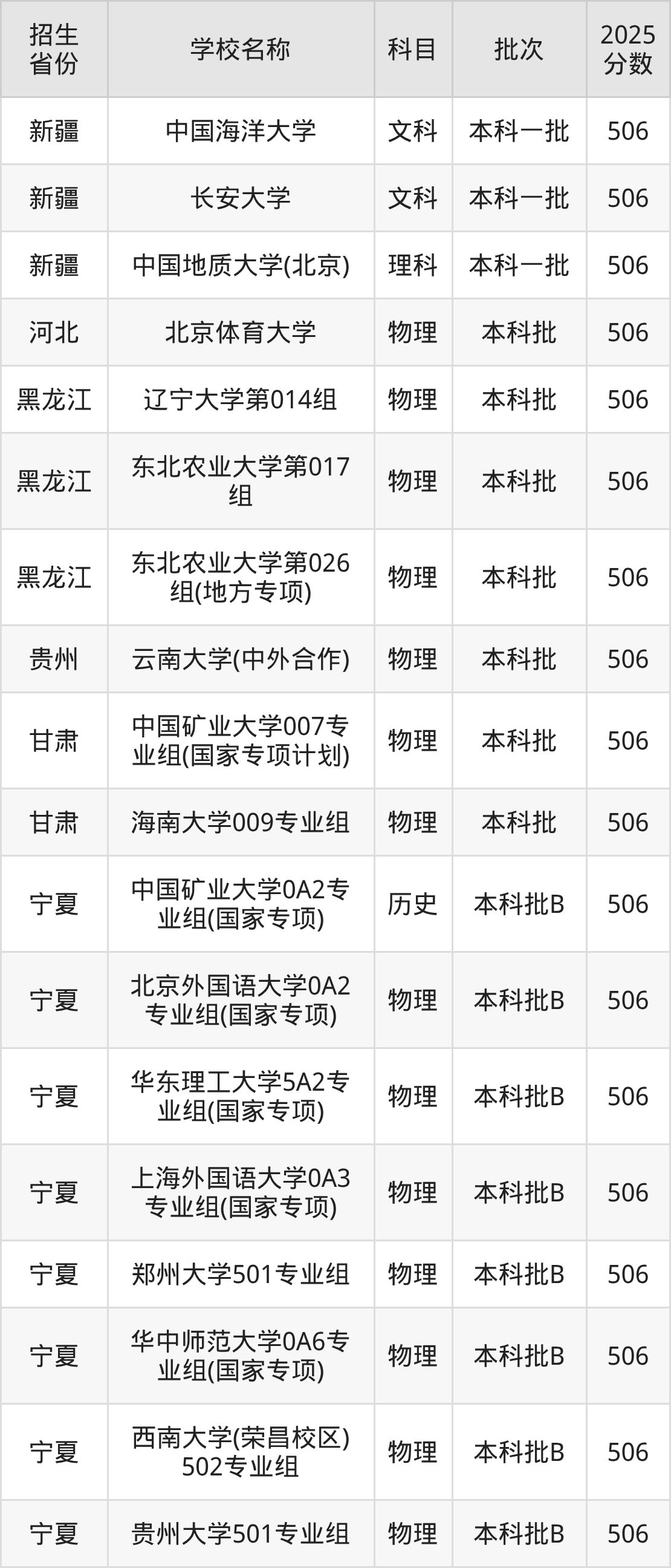 篩選全國各省2025年錄取分?jǐn)?shù)線為506分的211大學(xué)如下: