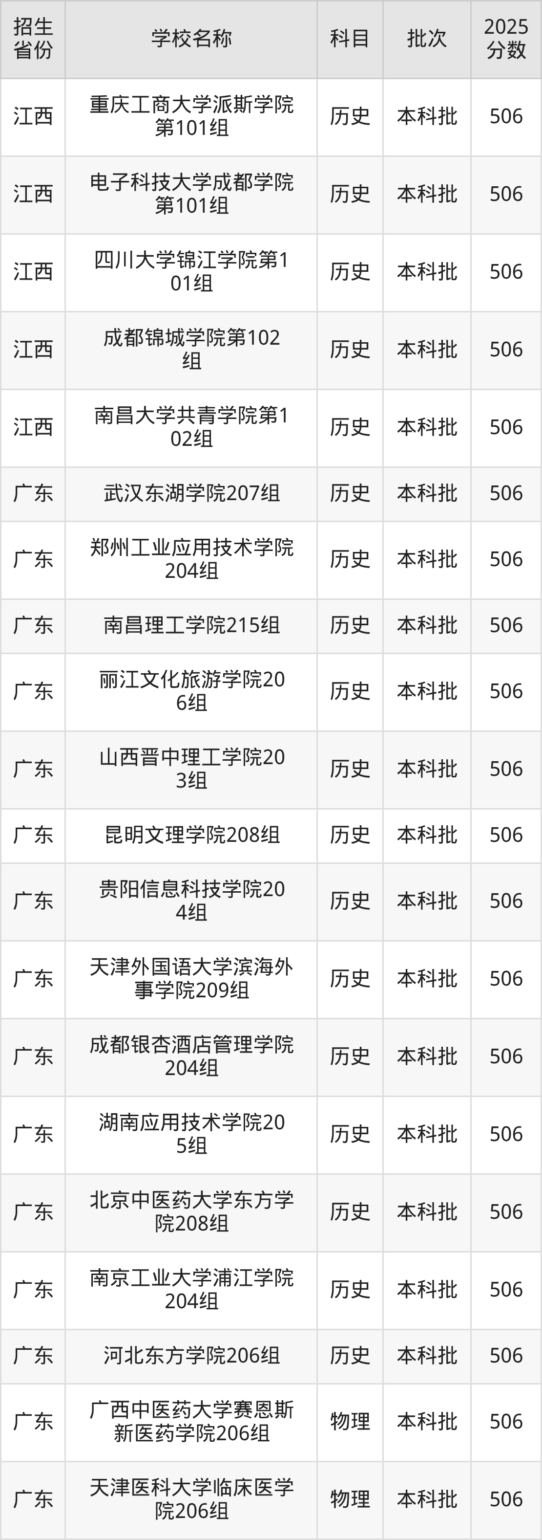 篩選全國各省2025年錄取分?jǐn)?shù)線為506分的二本民辦大學(xué)如下: