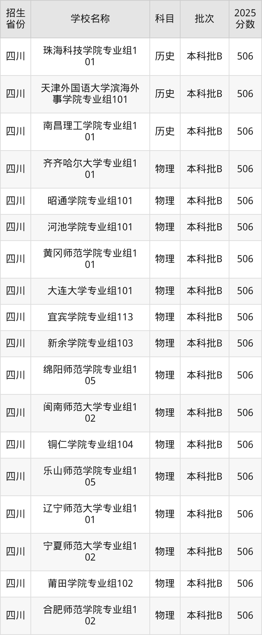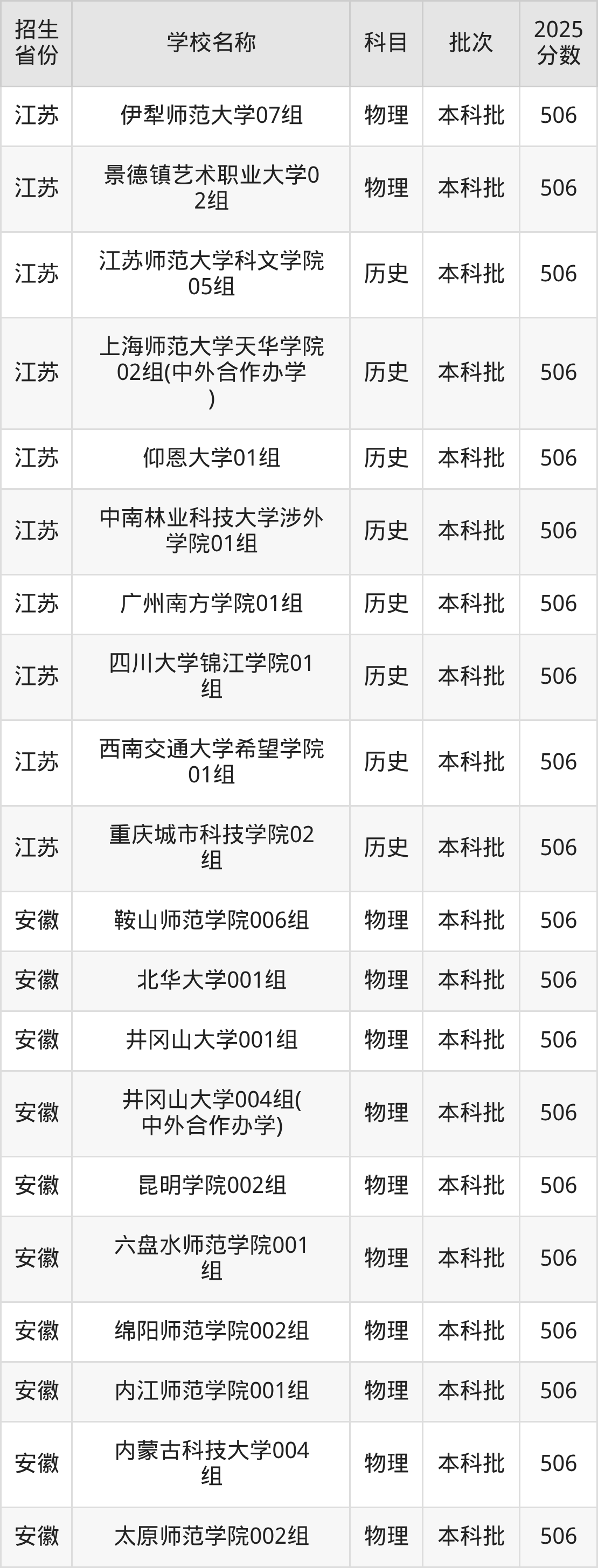 篩選全國各省2025年錄取分?jǐn)?shù)線為506分的文科大學(xué)如下: