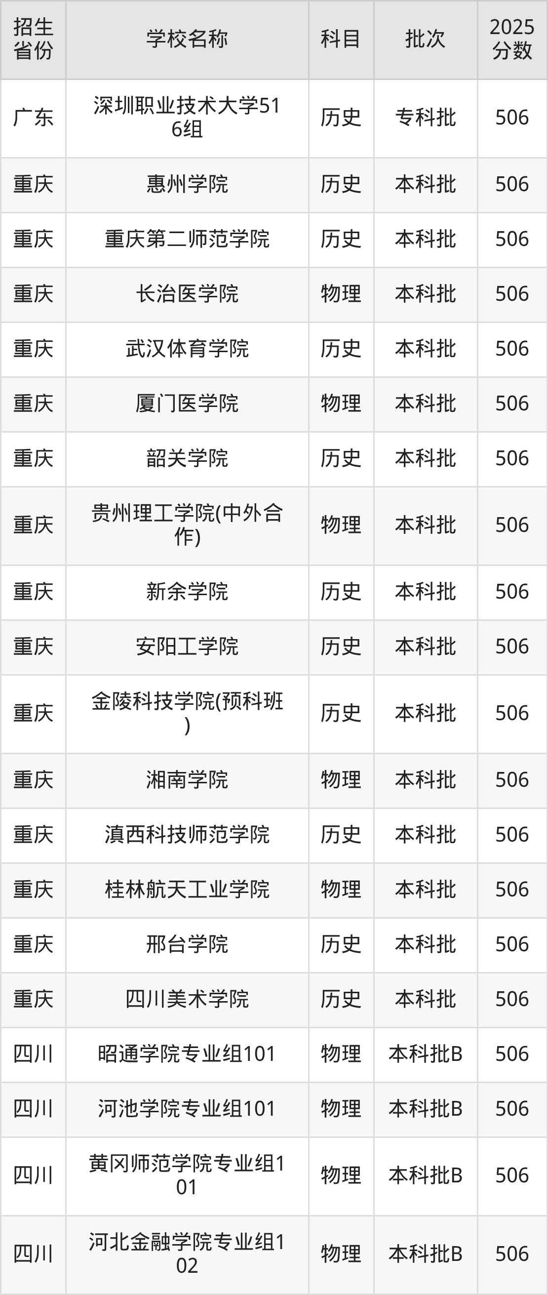 篩選全國各省2025年錄取分?jǐn)?shù)線為506分的二本公辦大學(xué)如下: