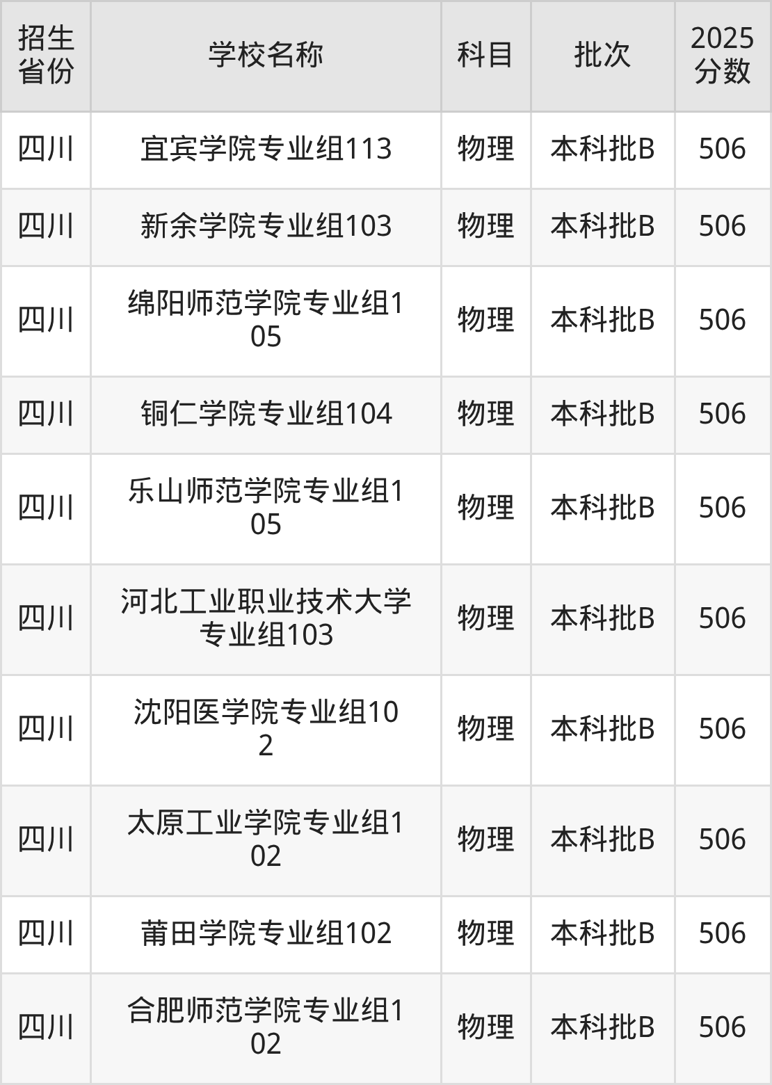 四川省物理組分?jǐn)?shù)線是506分的二本公辦大學(xué)有:昭通學(xué)院、河池學(xué)院、黃岡師范學(xué)院、河北金融學(xué)院、宜賓學(xué)院、新余學(xué)院、綿陽師范學(xué)院、銅仁學(xué)院、樂山師范學(xué)院、河北工業(yè)職業(yè)技術(shù)大學(xué)。