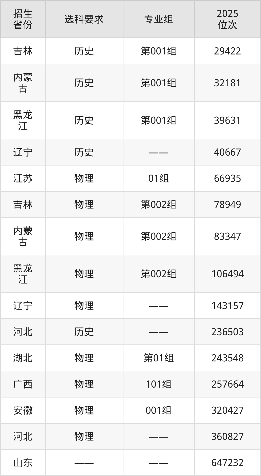 長春東方職業(yè)學院2025年在全國各省的位次差異較大,最高位次是29422位(吉林歷史類)、最低位次是647232位(山東)。各省具體位次請看下圖:
